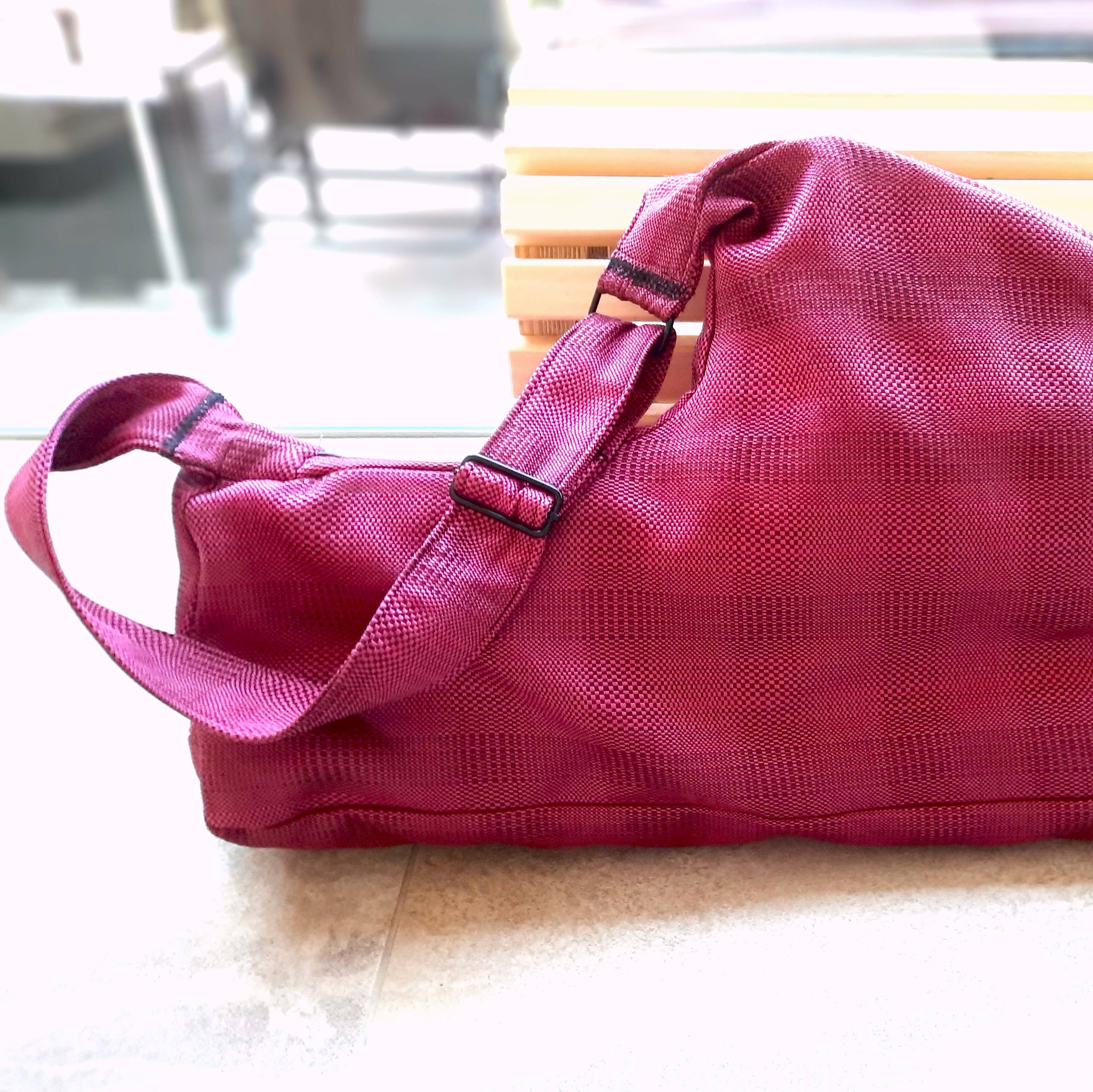Wir machen seit Jahren wöchentlich Yoga. Um Matte, Handtuch, Trinkflasche und weitere kleinere Accessoires mit uns zu führen, hatten wir immer getrennten Behältnisse. Meist die Matte zusammengebunden mit zwei Stripes und einen zusätzlichen kleinen Rucksack für die anderen Dinge. Die Matte war einfach zu groß um sie in unsere Lieblingstasche hinein zu bekommen. So waren es immer 2 Gepäckstücke. Bald kam der Wunsch nach einer Tasche für alles in einer auf.